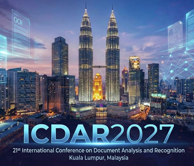 The Organizing Committee of the International Conference on Document Analysis and Recognition is delighted to invite you to Kuala Lumpur, Malaysia, for the 21st edition of ICDAR, taking place from August 18 to 22, 2027. The conference will continue the tradition of excellence established by previous ICDAR events, offering keynote talks, main track sessions, presentations, panel discussions, poster exhibitions, side workshops, and social gatherings. It is expected to host 450 participants from around the globe, ICDAR provides the ideal setting for the community to connect and collaborate.